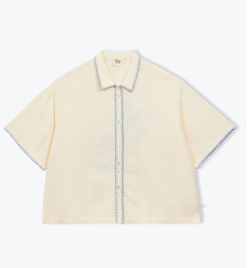 • Finition broderie sur le col, manches et patte de boutonnage.