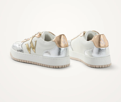 – Baskets en similicuir blanc